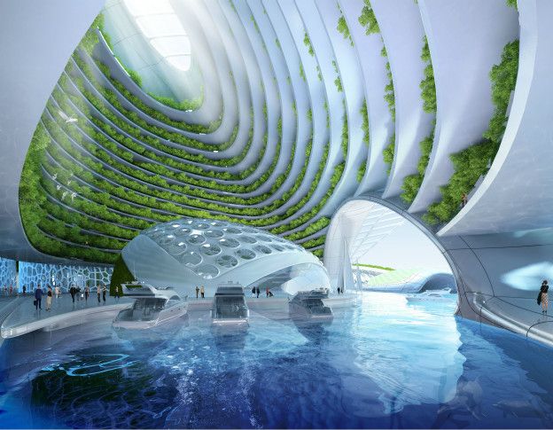 Essas ecovilas compostas por mil arranha-céus abrigariam 20 mil pessoas cada uma. Seriam autossuficientes e não gerariam prejuízos ao meio ambiente. Para ser bebida, a água do mar teria de ser dessalinizada, processo que costuma ser caro e complexo. O lixo orgânico seria reciclado com o auxílio de algas.