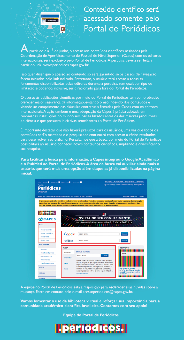 Conteúdo científico será acessado somente pelo Portal de Periódicos da Capes maio 19, 2016 Gerar link Facebook X Pinterest E-mail Outros aplicativos Conteúdo científico será acessado somente pelo Portal de Periódicos da Capes Comentários
